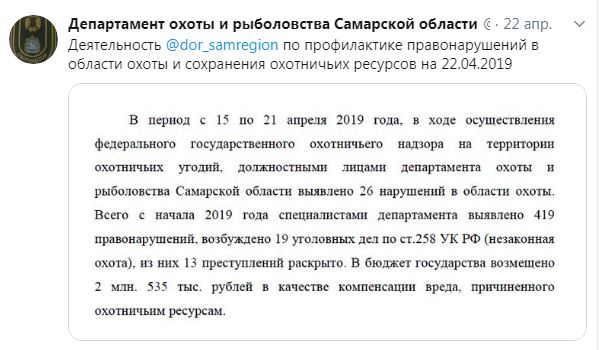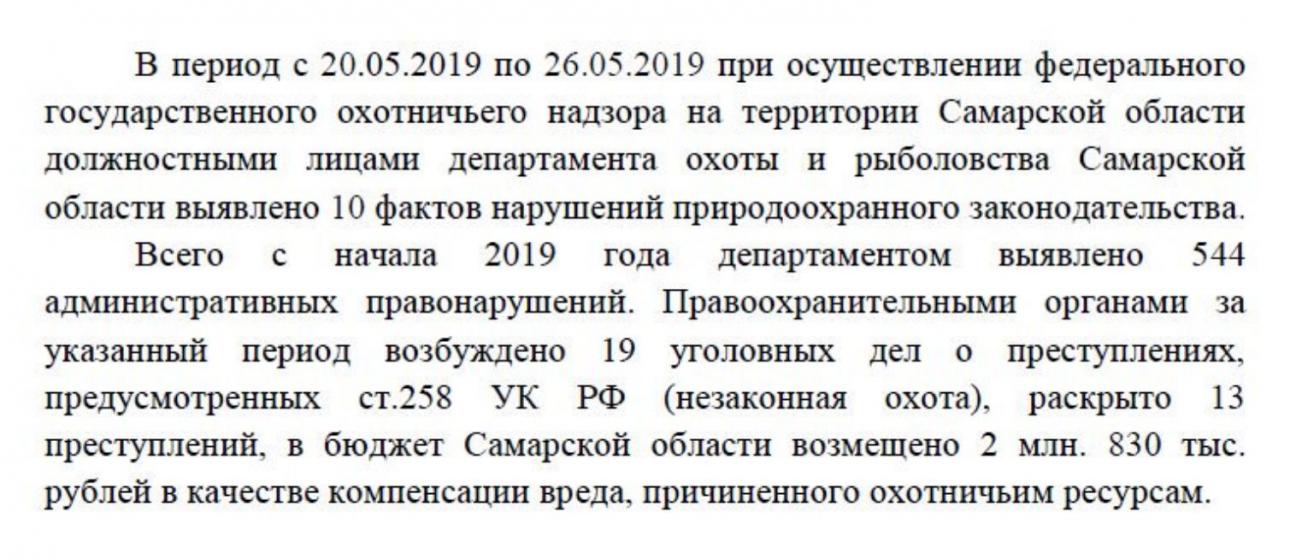 Прошу Вас разъяснить, какими именно пунктами постановления № 209 от 10 апреля 2019 года «Об особом противопожарном режиме на территории Самарской области», руководствовались специалисты Вашего департамента при подготовке постановления № 516 от 29 июля 2019 «Об установлении запрета на проведение любительской и спортивной охоты в отношении отдельных видов охотничьих ресурсов и способов охоты на территории охотничьих угодий Самарской области».