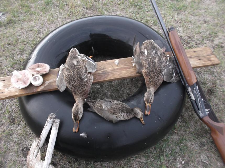 Сегодня сначала поднял чирков штук 7-8. Попал только в одного с третьего выстрела. Упал на землю, но поискать и поволноваться пришлось. А кряковых выгнал из камышей не менее 10 . Отстрелял все 5 патронов, а сбил двоих. Итог 8 патронов отстрелено, добыто 3 утки. Плохо это или сойдёт чёрт его знает. Но что порадовало попадал в каждую утю лишь одним выстрелом- все утки были биты на повал на дистанции метров 30-40. Дробь№7.
