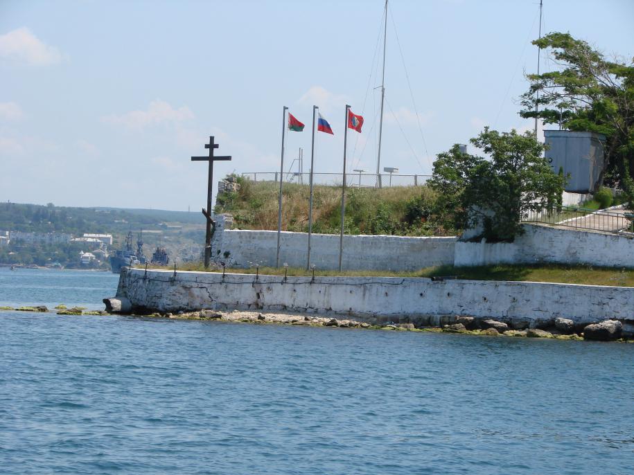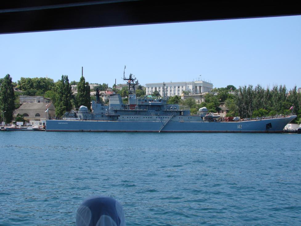 У причала плавучий госпиталь "Енисей". Фото сделано с Радиогорки от Михайловской Батареи.