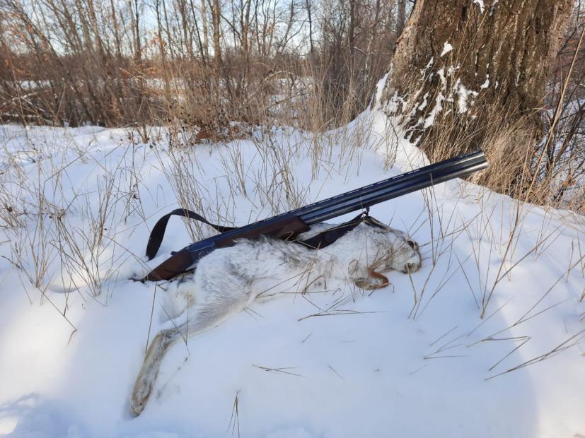 Закрыл сегодня одну из путёвок толи тупым толи очень ленивым зайцем. Увидел скидку с дороги. Заряжаюсь , встаю на заднеприводный снегоход и пошёл по скидке к кустам. Не доходя до куста метров 20 выскакивает заяц. Пока я вскинулся он уже забежал за наметённый бархан и прикрываясь им убежал метров на 60-70. Выстрелить так и не получилось. Стою и смотрю зайцу в след . А он отбежав метров на 300, встал около кустов столбиком и смотрит на меня. Я на него. И убегал он как то спокойно , без излишней прыти. Развернулся я и пошёл к машине, а заяц смотрел мне в след и ехидно наверное ухмылялся. Отъехал я километров на 5 и пару часов покружил по новым местам. Одного зайца потропил, но пришёл к пустой лёжке . Как он убежал я не заметил. Умотавшись прокладывать колеи в снегу решаю ехать домой. Но что то меня заставило вернуться к первому зайцу. Подъехал на тоже место , но захожу по большому кругу метров на 400 с зади к тому кусту где заяц столбиком стоял. Вижу пару сдвоек впереди . Всё я весь на готове. И не доходя метров 15 до куста вновь выскакивает мой знакомый. Одним выстрелом метрах на 30 я его добываю. Специально обошёл это место ещё раз по кругу , думая что это может быть другой заяц . Но следы показали что ушастый здесь был совершенно один. Поленился он убежать куда ни будь подальше и залечь на оставшийся день в каких ни будь ебенях, вот и поплатился жизнью. Чему я был несказанно рад. Первый зайчик 2021 .