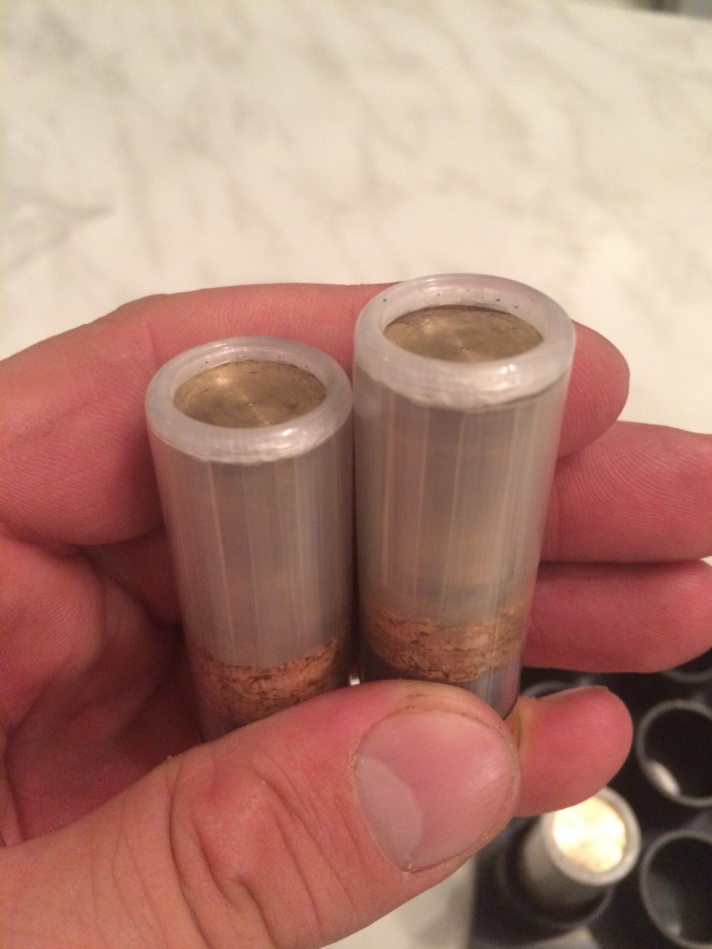 А я к кабанам все готовлюсь... Вот пожалуйста: СПИ и Рубейкина в новой рубахе от Корала. Правда СПИ согласно рекомендаций производителя не помещается в Азотовскую гильзу и получилось уе...но!(( Но Рубейкина прекрасно закрылась, хоть и тоуго входит, даже где хвост пули ободок на гильзе ощущается, как от прокладки... Честно, чето стрелять боезно... Рецепт после отстрела.