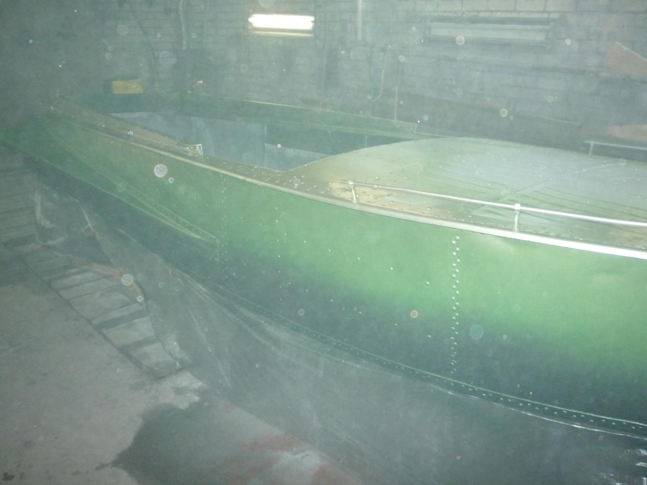 Отремонтировал киль в носовой части. Приклепал тавр по всей длине лодки. И приклепал два уголка 20 на 40 по бокам для усиления, ну и сносить на поворотах будет меньше. Загрунтовал и покрасил. Да забыл, заменил чуть побольше 110 клепок по днищу. Переворачивал, заливал не течет.