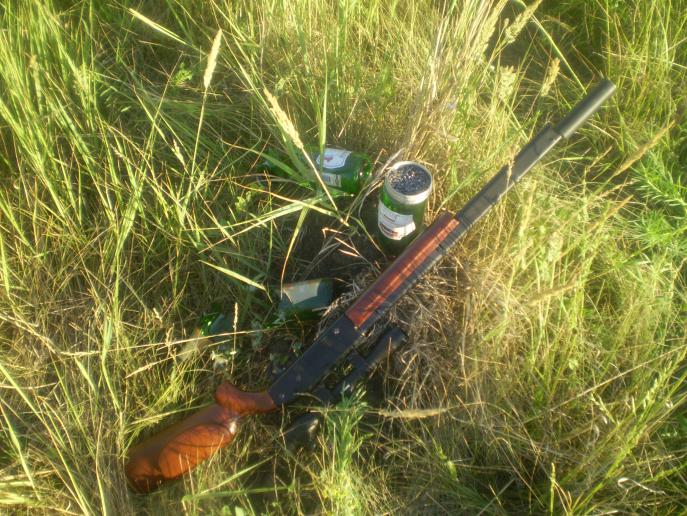 Ну а раз начальная стадия "болезни" уже началась, надо включаться и "лечить" коллегу. Как ни крути и не настраивай ППП-винтовку у нее всегда мало мощщи и зверская отдача. Еще один минус ППП, быстрое убивание оптики. На такую винтовку, ставится оптика расчитанная на отдачу, которая сопоставима (скорее даже превышает) с ружейной. Она же, отдача мешает точному выстрелу. Обычно следующим шагом. становиться владение Мультяхи, или мультикомпрессорной винтовки, которая лишена "детских" болезней ППП, самая простенькая из них Кроссман 2100. Мне так понравилась эта винтовка, что удостоил ее букового приклада и перевел в РСР. Сейчас показывает вполне приличные результаты, разбивая на вылет бутылку от шампанского на расстоянии сорока метров. (вполне допускаю, что сможет и больше, но не пробовал) Хит бюджета среди РСР винтовок, она обошлась мне в 8,5 т.р. вместе с прикладом (пришлось повозиться с рашпилями) и саундмодератором. Но и она из коробки не впечатлила результатами. Отсюда и этот кропотливый труд. Ну и завершающим этапом служит покупка полноценной РСР. Там тоже есть нюансы, калибр, размер резервуара и т.д. Последние лекго "гонятся" и стреляют вполне приличной для пневмы скоростью до 350 мысов.