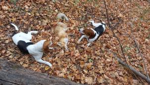 Сегодня тоже решил отметиться на охоте, которая для меня длилась ровно 5 минут, пока выжлец не поднял кабана. Все остальное время на поиски собаки, нашел уже в 19:00, когда и надеятся перестал. В процессе поска поднял двух коз и двух косых( уже вечером), но было не до них. Зато местечко запомнил.