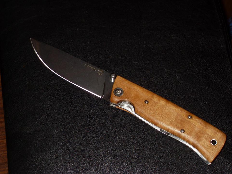 если не ошибаюсь, то это стерх. К сожалению сейчас Кизляр не может похвастаться хорошей ТМО и вообще качеством ножей, особенно складных. Это лотерея. Мне однажды пришлось помогать выбирать складень комраду, так из пяти складных Стерхов ни одного нормального не смогли выбрать