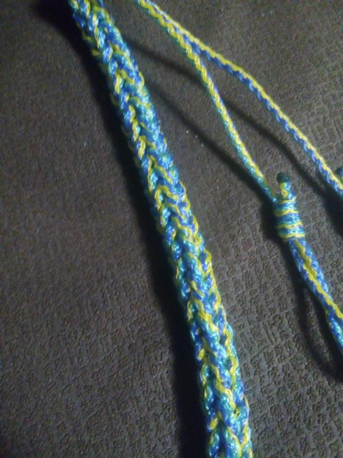 Опять же расцветок много подходящих. Порекомендуйте шнур какой-нить, пусть хотябы черного цвета. То что я плел, ярковато к.м.к. но это было самое темное из того что удалось найти в хозмаге. (цена кстати 35 руб за 20 метров!!!).