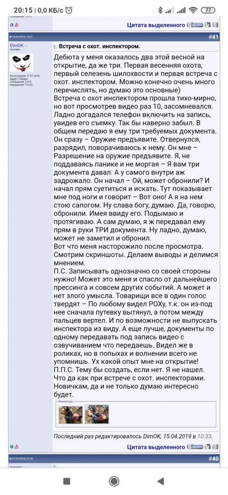 Хочу добавить, все базары случаются либо от банальной синьки ( что уже нарушение ) , либо когда охотнику есть что скрывать от инспекции. Из своего опыта общения с охотоведами, инспектороми и егерями ни разу никогда и никто из них не превысил своих прав в отношении меня или нашей команды. В конце концов, если накосячил ,ответь за себя . |