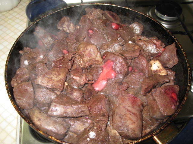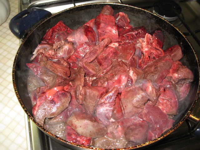 А у меня сегодня на ужин ливер косули.Достал с утра перед выездом на охоту пакет из морозилки,к вечеру разморозилось,кинул в холодную воду на пару часов.Высокая сковорода,крупно порезал,немного потопил сальца,выкинул шкварки и все туда.На среднем огне,постоянно помешивая.Считается,что селянка готова,когда вся влага выпарилась,но чуток рецепта от меня.Когда ливер уже почти готов,закидываем луковицу,солим,перчим и заливаем самодельным кетчупом(у меня была заливка из под лечо),накрываем крышкой и на медленном огне еще 15-20 мин,иногда помешивая.Очень мягкий ливерок.