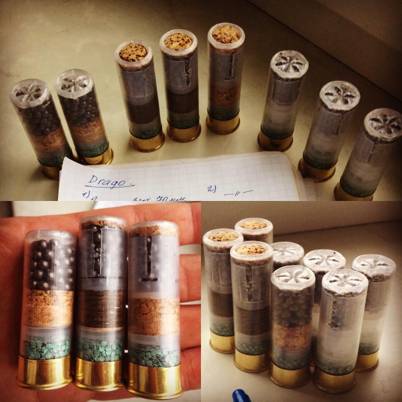 Снарядил патроны на Драго! Рецепты и результаты на фото. Отличительная особенность данного пороха - это легкая, минимальная отдача и полное сгорание пороха. После стрельбы (20 патронов) ствол чистый, как будто почищенный. На №1 34 грамма надо колдовать, а вот на 32 граммах мелкой дроби результат впечатлил. Нужно отметить, что был сильный ветер в поле (где стрелял) справа налево, осыпь так же смещена слегка... Ружье Бенелли М2 со стволом 710 мм. Чок 0,5; Кикс 0.15 и 0,75. При отстреле №1 доску 1,7 мм шило насквозь, при отстреле №6 использовал другую чурочку, при отстреле с 0,5 чоком 9 мм глубина проникновения до дроби, при Киксе 12мм.