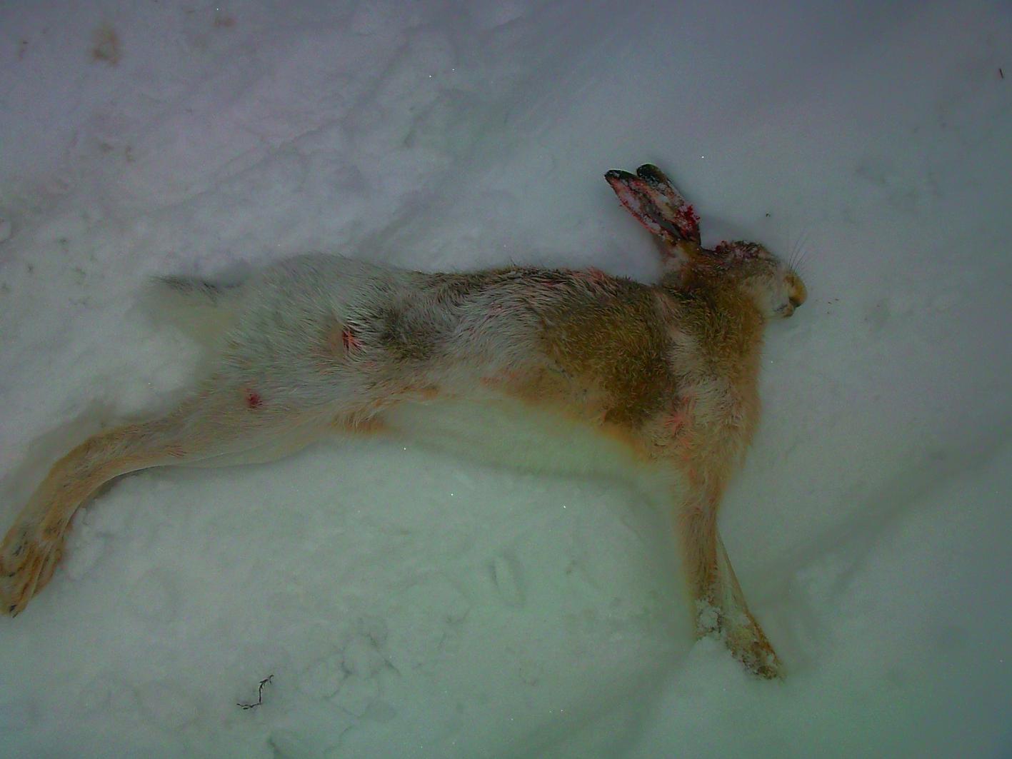 В субботу открылся по зайке, снега мало было еще, распутывать след местами сложно очень, но один добыт! Кстати опробовал ножик новый! Работает прекрасно! Спасибо Жень!