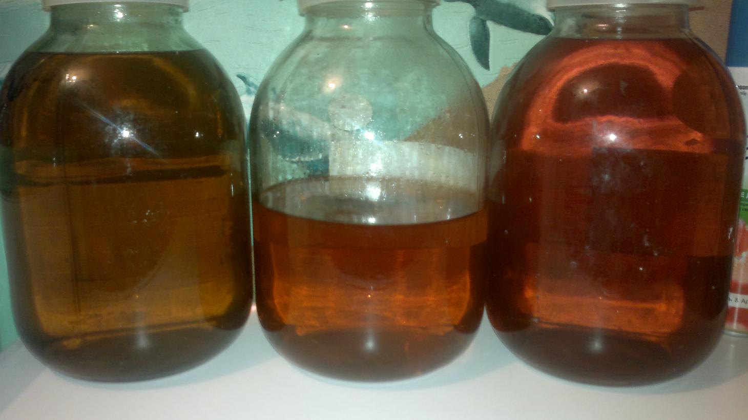 -после перегона сыплю марганцовки, стоит дня 2 выпадают хлопья 1 фото-добавил марганец 2 размешал 3-2 дня выпал осадок. и фильтрация через вату обернутую в бинт.становится чистым - по простому в домашних условия спирт с водой хорошо смешивать так вроде. часть спирта-часть воды. все это дело почти доводится до кипения и смешивается,хорошо встряхивается и на охлаждение(не комнатное)