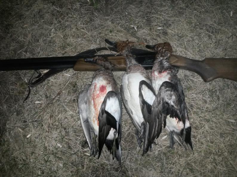 . Нашли их "штаб" , пока заплывали подняли голов 30 чирков небольшими группами и красноголовиков . Ну думаю сейчас - сейчас ...Зарядились и ливень тоже зарядил , ну мы дождевики одели и выдержали первый удар стихии.Потом все стихло , как в ванной . Тишина . Долго не разбираясь садится в чучела чирок прямой наводкой , Лёвка стреляет мимо . Через час садится новый опять мимо . Я все жду ,что летать будет и держу палец на предохранителе полуавтомата , рядом сын с Иж 43 наготове . И вот он ! Опять Лёвкин клиент ,садится в 10 метрах от лодки , слышу сопение, выцеливает, ствол ходит туда сюда, думаю опять промажет...Шлёп и готово 7.5 NRG 28 грамм настигли красноголовика .Отцовские поздравления, детский ажиотаж и нас накрывает снова ливень, собираем чучела добычу и гребём домой. Впереди сушка ,протирка и смазка двух ружей . Впрочем я уже все сделал , а ребенок вырубился не раздевшись без ужина.))