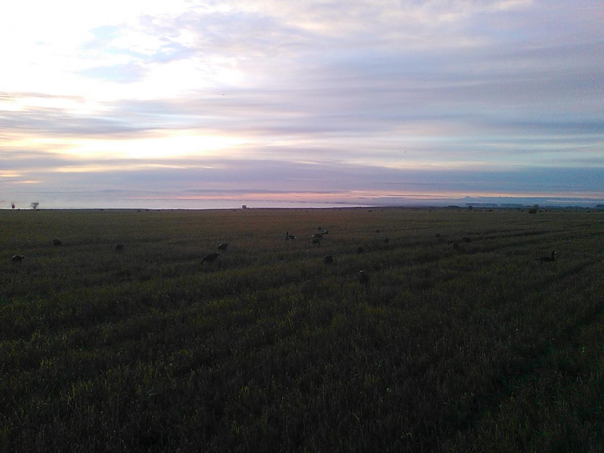 Вернулся с Татарии! 1:0 в мою пользу, могло быть и лучше, но есть много НО!!!!! Поле первый налёт из которого благополучно выбил одного белолоба, НО на третьем патроне заклинил автомат и поэтому больше не получилось! После обеда после скитаний по клеткам всё-таки нашёл небольшую стайку гумяшей на перепаханной пшенице, решил отложить действо на утро. За ночь выкопал окоп, раставился. ВСЁ! СИЖУ!!!! ЖДУ!!!!! Погода из гусиной превратилась просто в Ж...ПУ! Гумяшики которые по моим предположениям должны были вернутся на это поле, так и не пришли. настроение начинает падать, курю, всматриваюсь в небо, КАК молча, сзади налетает на меня десятка серяков, пока туда сюда вобщем проспал или просрал, но они сели от меня в двухсот метрах от меня, пока я вырабатывал план по перехвату, проезжающая вдоль поля машина спугнула осторожных серых гусиков, и мимо ходом они проходят вдоль моей присады в 50 метрах, решаю стрелять! НО всё мимо!!!! Настроение упало окончательно. Собрался и попер домой! Вот так открыл осенний гусиный сезон 2015!