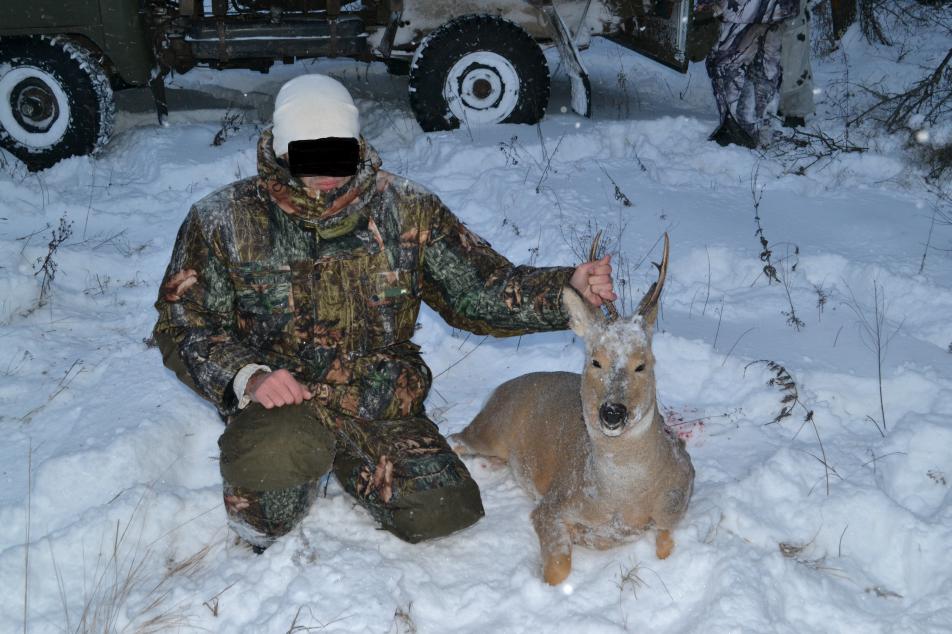 В субботу были втроем в одних частных угодьях Оренбургской области. Погода не айс. Пять загонов по нулям, зверь где то лежит. Следов зайца не мерено пара из них чуть не сбили с ног. В крайний загон уже вечерело по лаю собаки поняли что кого то подняла. На меня вышел козлик, пропустив его за себя т.к. был с карабином положил его. через две мин. на товарища вышла коза, тоже взята. Усталых и довольных ждала долгая дорога домой. Спс загонщикам и организаторам. Кабанчика так и не увидели. На праздники поедим туда за кабаном козу уже закроют.