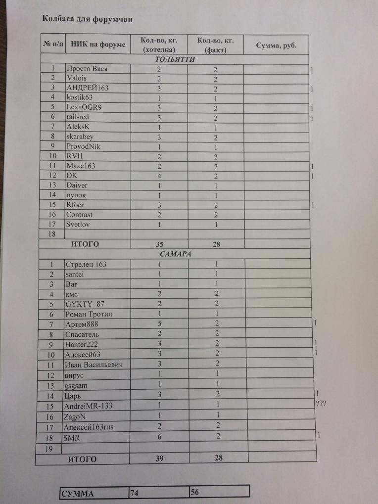 ИТАК, СТОП был еще вчера. Что бы не было недоразумений, упаковка по 1 кг +/- 100-150 грамм. Резать я ни чего не буду, прошу понять и простить... Многие вчера уже это обсуждали в Вайбере, вроде все согласились. Т.е. у кого то будет в пакете 900 грамм, у кого то 1100 грамм, а платить все равно за 1 кг. Прошу понять правильно, 50 кг. ведь... Забирать всем и желательно сразу как оповещу. Самарцам думаем как переправить, вроде Толстов Евгений собирается, лучше одному кому то (Кирилл вроде может получить все). Деньги переводим мне на карту после "отмашки". Список окончательный вывешу чуть позже, пока он такой: Ни кого после СТОПа не писал и многих урезал, что б не обидеть ни кого... Без обид, мужики!
