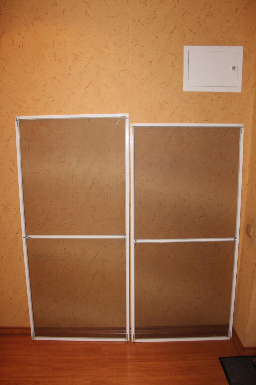 В продаже 2 москитные сетки. Конструкция современного типа, с надежным креплением, практически новые, усилены посередине перегородкой.