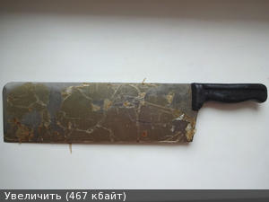 Нашёл секач для рубки мороженного мяса и костей из войсковых запасов для столовых в/ч, вес 1,5 кг. Клинок: толщина 4 мм, ширина 130 мм, длинна 350 мм. Сталь: совковская.