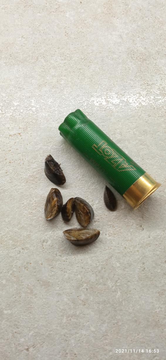 Но закрылся всё же красиво: единственный налет на заре, шла по ветру на сверхзвуке, один выстрел точно по месту, два шлепка об воду, класс! Интересная находка в зобу в виде ракушек внушительного размера, раньше такого не встречал. Для меня сезон окончен: и грустно и радостно - устал, весь отпуск месячный кряков долбил. Лодка, комбез просушены и убраны на зимнее хранение, ружье вычищено, чучела в гараж, одежду в шкаф. До нового сезона. |