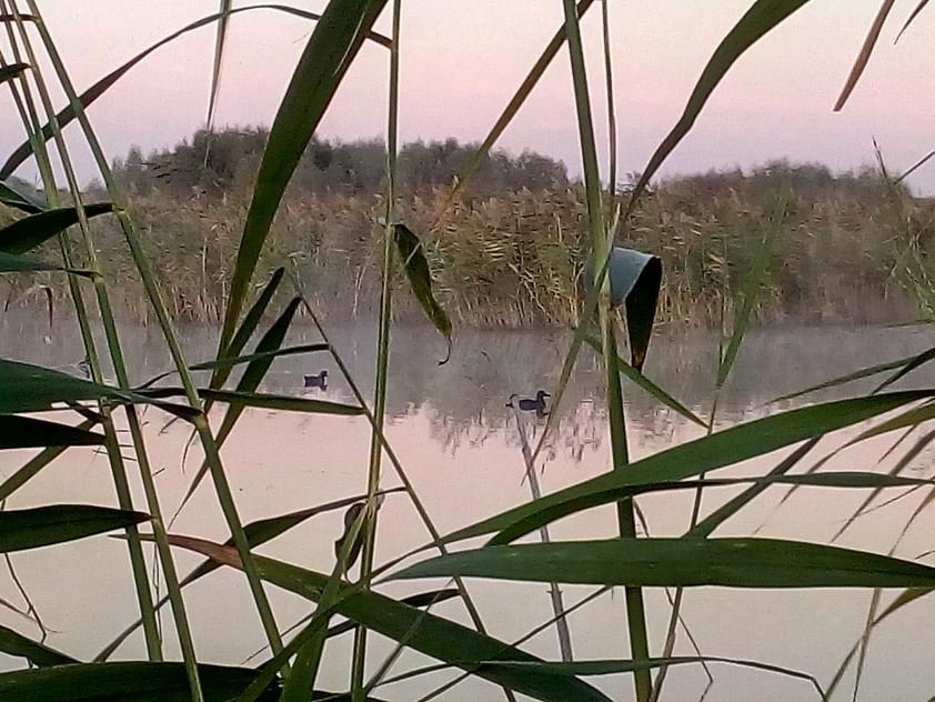 Вечерку стоял на плесе. Вроде и место перспективное, с моей точки зрения, но никто так и не прилетел и не пролетал, пока совсем не стемнело. Утром уже заплыл на большую воду, расставил чучела, замаскировался, и давай приглашать в гости уток манком. Лысухи пришли первыми. В 3-5 метров от лодки даже плавали, и прилетали и бегали, разминая крылья и ноги. Но целью данной охоты была утка. Уже солнце встало, сначала просвистели пулей 2 чирка, всегда как то неожиданно, промазал! Спустя некоторое время, видно привлеченной манком, кряква с покрякаваниями полетела из крепей в мою сторону. Все хорошо и расстояние, и полет и видимость, ну нельзя промахнуться, и я… промазал! Мазила еще та! Ну и в завершение утреннего этапа, из-за спины 4 чира на сверхзвуке проносятся над чучелами. То ли я хорошо крякал, то ли резинки привлекли, но сделали круг и пошли на меня. Первым выстрелом бил ведущего звена, свалил наглухо. Остальные, по тормозам и якоря, наверно, еще бросили. Резко стоп и вверх в угон. Отличный был противозенитный маневр, сработал на все 100! Вторым выстрелом промазал! Третий этап охоты был с подъема. Поплавал по крепям, где мог пролезть на лодке. Потом уже самотопом походил по болотам, нет утки или сидит крепко. Пока ее базы не нашел. Результат так себе, но это же охота, не в магаз сходить. Будем искать. Совсем рядом семья лебедей кормилась, красивые и не пугливые. |