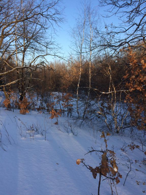 Часов к полдесятому снегоходы привезли нас к колку леса с оврагом, на дне оврага камыш и тальник. Егеря сказали , что здесь д.б. выводок кабанов.