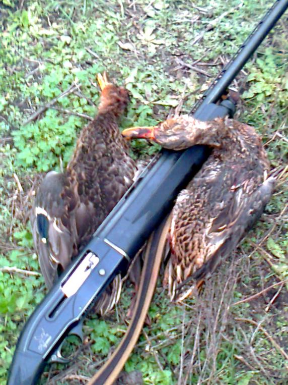 До выходных не дотерпел, вчера рванул на охоту. Ездили с товарищем на границу с Ульляновской обл. на утку. Охота там интересная , с подхода , условия очень комфортные , ходишь по твердому берегу , речка в низине ,берега с кустами у воды.Ни грязищи с камышами , ни болот . Из десяти подходов , шесть раз поднимали уток , стаи от трех до 10-12 шт. Стреляли правда три раза , остальные поднимались не удобно. Столку сбивало то, что поднималось много уток и разбегались глаза. Много мазали , но четырех жирных крякашей взяли. Пришлось и спинингом поработать , везде речка по колено , а где последних уток взяли метра два. Так что пристрелявшись , заблеснил их.