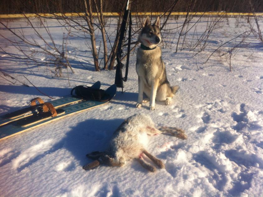 знает что он привязанный? Я тоже сгрешил добыл зайца которого вся охрана знала ,а я нет Еще удивлялся как мог стрелянный (мимо) через 100 метров опять залечь ,но тут уже святое-подранок Хоть и тяжелый но без собаки бы не добрали |
