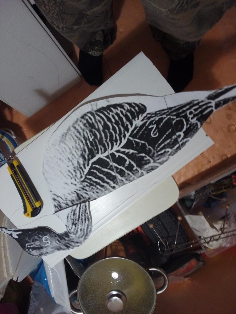 День стал чуть длиннее, местами пригревает солнышко... и смотрю не только у меня одного засвербило! ![]() ![]() ![]() В очередной раз перечитал ваши старые отчеты об успешных (да и безуспешных тоже) охотах, и понял, что дальше совесть не позволяет общаться с вами втихаря))) Позвольте, представлю вам на суд, скажем так отчет, но пока не об охоте, а как я в это втянулся... между прочим не без вашей помощи)))! Я здесь новенький, в прошлом году примерно в это же время года добрался до самарского форума и "ушёл с головой" на неделю именно по теме "Охота на гуся"... Когда очнулся - понял, что оооочень хочу на гусиную охоту!!! Будучи обладателем новенького турецкого полуавтомата Пегасус, а после изучения просторов интернета еще и недипломированным теоретиком по гусиному вопросу, я лелеял надежду принять участие хотябы в открытии весенней охоты. А в связи с отсутствием опытных учителей, решил подойти к вопросу самостоятельно, но по-серьезному! Итак, о чем в принципе хотел повествовать - изготовление профилей гуся своими руками: Взял несколько панелей ПВХ (белых матовых), кусок сендвич-панели (из нее делал головы к профилям), затем скачал фото гуся с интернета, разделил его на несколько частей и каждую отдельно распечатал на принтере (т.к. корпус гуся оказался значительно крупнее стандартного листа А4), и соорудил 3Д макеты гусей. Идея была сделать именно 3Д-профиля, которые видно и сверху и сбоку как полноценные чучела, но в то же время собираются и разбираются. Весь процесс постараюсь представить на фото ниже, благо они еще у меня сохранились. С помощью баллончика матовой черной краски разукрасил профиля, оставив кончики крыльев и хвоста белыми. Первоначально мне казалось, что этого будет достаточно. Но аппетит приходит во время еды!))) Естественно не хватало оперения!!! Взяв в руки распечатанные фотки гуся и вооружившись канцелярским ножом, после пары часов работы у меня появился замечательный ТРАФАРЕТ! Пришлось докупить баллончик белой матовой краски и по черному корпусу вывести замечательные перышки. Последний штрих оранжевым цветом на клюв, и моя стая заговорила, загогатала))) Всё как положено: кормящиеся в разных позах, и пара сторожевых. В заготовках у них разница только в форме шеи, корпуса одинаковые. В качестве стойки использовал отбитые старые электроды, поэтому на ветру вращаются как флюгеры. Не сделал только оранжевые лапки... но к этому сезону доведу до ума))) Стая в 12 голов у меня уместилась в ашановскую сумку. P.S.: когда готовил, боялся, что могу даже и не увидеть настоящих гусей на охоте, всякое же бывает... думал, лишь бы не перегореть, не разочароваться... Но прошлогодняя весенняя охота меня побаловала! С первого выезда я взял двух белолобиков, а двое моих друзей, такие же начинающие, тоже с трофеями - еще белолобик плюс гуменник. Так что две недели работы над профилями не прошли зря! Всё, чем хотел поделиться - рассказал. Можете судить строго и закидывать тапочками мою идею ![]() По фоткам ограничение до 5шт, постараюсь добавить следующим сообщением))) |
