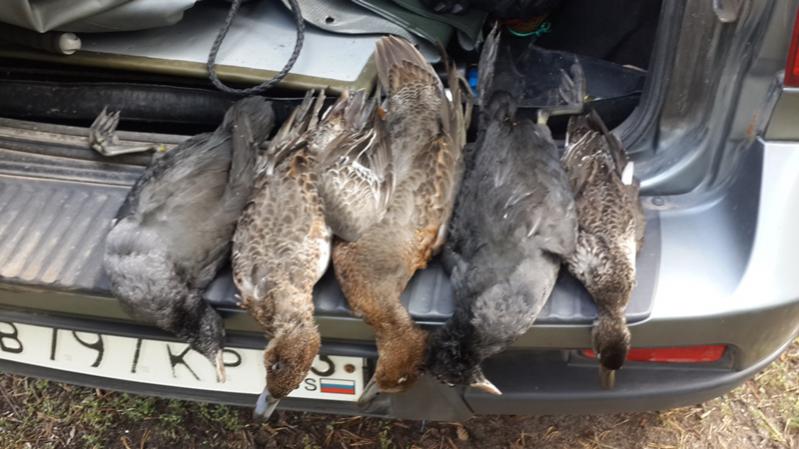 Ружьё починил, жену на море свозил, вчера вечером вернулся и уже сегодня с рассветом на охоту. За 12 дней начал просто тосковать по этому делу. Сначала взял двух крякв. Подъехал, зарядился и пошёл вдоль высоких деревьев к болотцу. Слышу взмахи утиных крыльев. Думаю-Ну всё свалили, подшумел таки. Но оказалось, что это они только прилетели. Подошёл поближе и слышу за камышами утки ряску чавкают. Через камыш лезть- только спугну. Но есть проход к воде в метр шириной. Решаю ждать когда проплывут напротив прохода. Минут через пять появилась первая, я жду . Далее выплывают ещё 4, я вскидываюсь , утки как ужаленные поднимаются . 3 выстрела и две падают. Одна наглухо , а вторая как лысуха побежала по воде к камышам на противоположном берегу. Два патрона на добор трачу- вроде бы успокоилась. Я с пару минут постоял, посмотрел на сбитых уток и убедившись , что они не шевелятся пошёл к машине за забродниками. Вернулся буквально через минуты три. Первая утка на месте , а вот второй нет. Всё таки подранок. Но по следам на прибрежной тине я её быстро взял в плен в камыше. А третью утю взял в другой болотине подкравшись почти метров на 5-7. Сначала взлетела ошалевшая цапля , а уж за ней одинокая кряква. Отпустил её метров на 15 и одним выстрелом набил ей дроби полную клоаку. Первый раз в этом сезону сбил уходящую утку. На этом решил завершить охоту на сегодня , ведь ещё разделать всё надо. Хочу немного поделиться впечатлениями которые я испытал когда ехал с моря по Ростовской обл. Там фазаны как голуби у нас бегают вдоль дороги и клюют просыпанное зерно. Я вообще их увидел в природе впервые , а тут сразу много , и по одному и по три и не боятся проходящего транспорта. Сказка какая то просто.