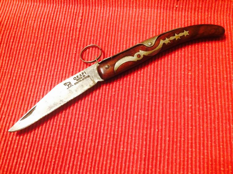 А тащемта Окапи мой первый нож. Мне фатер подарил его в ШЕСТЬ! лет и про@бал я свой первый найф через пару-тройку месяцев, помню, что лето было и в этом же году я в школу пошел. Ногой случайно столкнул с пирса Новороссийского рыбколхоза, с которого мы - пацанва сопливая, ловили иглу и бычков. Вот где горе было... До сих пор помню. Ещё помню, что не осилял нож закрыть, замок тугой был, брата просил старшого. А батя в порту работал на второй работе, вот и достал там этот ножик. А на фото современный Окапи, сотворенный кривыми руками негров из Саут Африки и купленный мной за 70(!) руб, в Комсомольском универмаге, в отделе, где продают всякий электронный кетайский хлам. Где-то фотка была... Последний раз редактировалось sedoy zloy; 03.10.2019 в 17:38. |