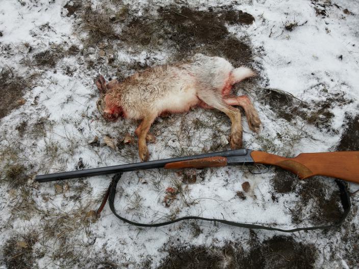 весь день убил на поиск косого. с утра в начале восьмого был уже на месте. пока ехал тетеревов увидел, попробовал подойти-не получилось, не подпустили. потом часа два убил на вытаптывание вместе с собаками. в результате гончак поднял лису. завернула она круг не маленький и он ее потерял, скорей всего занорилась. не пошел проверять, там другая область уже. после обеда переехал на другое место к озимым ближе. обошли кромкой и нарезали пару кругов по пашне. снега практически нет, но там где есть видно след заячий, но не свежий. решил тут крутить, в надежде вытоптать. и подняли)) гончак в стороне был, а я с лабром молодым березняком шел. и смотрю побежал. лабр за ним, только жопы мельтешат)) в какой то момент зай метнулся в сторону, я стреляю-мимо. он закругляет в другою-опять мимо. вобщем ушел. лабрик кругов пять нарезал там куда зай слинял и вернулся. а гончак на выстрел прилетел. и тут я не понял че ему в башку стрельнуло, я его в сторону зайца толкаю, а он разворачивается и опять туда откуда пришел. как дурак стою... с двумя собаками и без зайца.