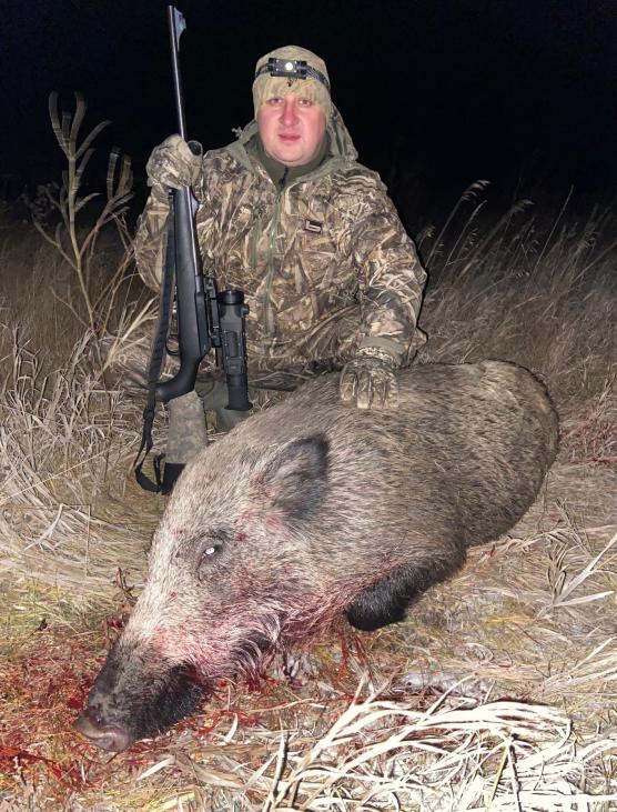 В этот день за разговорами шепотом, стоя на дамбе высохших болот, где давно все засажено кукурузой, подсолнухом мы стояли на номере и ожидали кабана. В родном регионе охота закрыта, поэтому мы поехали в соседнюю область, где радужно нас встретили друзья. Ветер и снег сшибали с ног, мы скукожившись стояли с красными щеками и обсуждали возможные пути выхода зверя. Слева кукуруза, справа подсолнух, поля убранные. За нами болото и поле стерни. Странно, хотя для меня уже это не новость, Иван оглянулся назад – «Лех, кабаны… Мышкуют»! Два секача на расстоянии друг от друга 15 метров стоят и ловят мышей в траве и вообще не интересуются ни нами, ни культурами, которые как будто специально посаженными для них… «99 метров» - коротко прошипел напарник. Упор. Предохранитель. Камеру на прицеле включить, для запечатления. Прицелился. Расстояние удобное, кабан не большой, никаких проблем… Выстрел по голове и один из секачей завалился на месте, а второй побежал спасаясь в траву и болото… Пока гон не начался и мясо кабана обладает супер вкусом, сочностью и мясным ароматом, нужно добывать дикую свинку на пельмешки… |