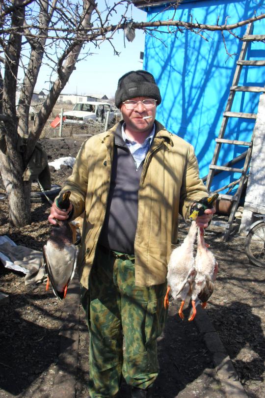 Ездили в Саратовскую область, в среду позванил знакомый, говорит гуся приперло немеренно, сидят на разливах р. Терешка на озимях. В четверг были на месте, никого не нашли. Знакомый оправдывается три дня гуси жили никуда не летали, где сейчас, только плечами пожимает. Нашли в одном месте уток. Сделали сркадок , поставили чучела, манили манками, результат за десять часов 1 селезень свяизи, да безуспешная попытка орлана упереть чучело красноголовика прямо из под носа. Выслушав немного мата улетел к себе в поднебесье.В субботу опять пытались отохотится, погода чудо с самого утра дождик, ветер 6-10 метров, температура 0 градусов. Утка прет над Терешкой в поднебесье, гуся 2 косяка там же в небесах. В результате ноль. Будем ждать очередных известий и снова в бой.