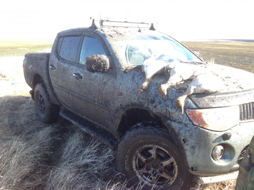 3) Клиренса хватает для безбоязненного штурма весеннего поля раскисшего до состояния полного пластилина, такого по которому уже "своим пешком" идти весьма тяжело. Если авто уже не хочет ехать вперед, то назад по своим следам выезжает легко и весело.