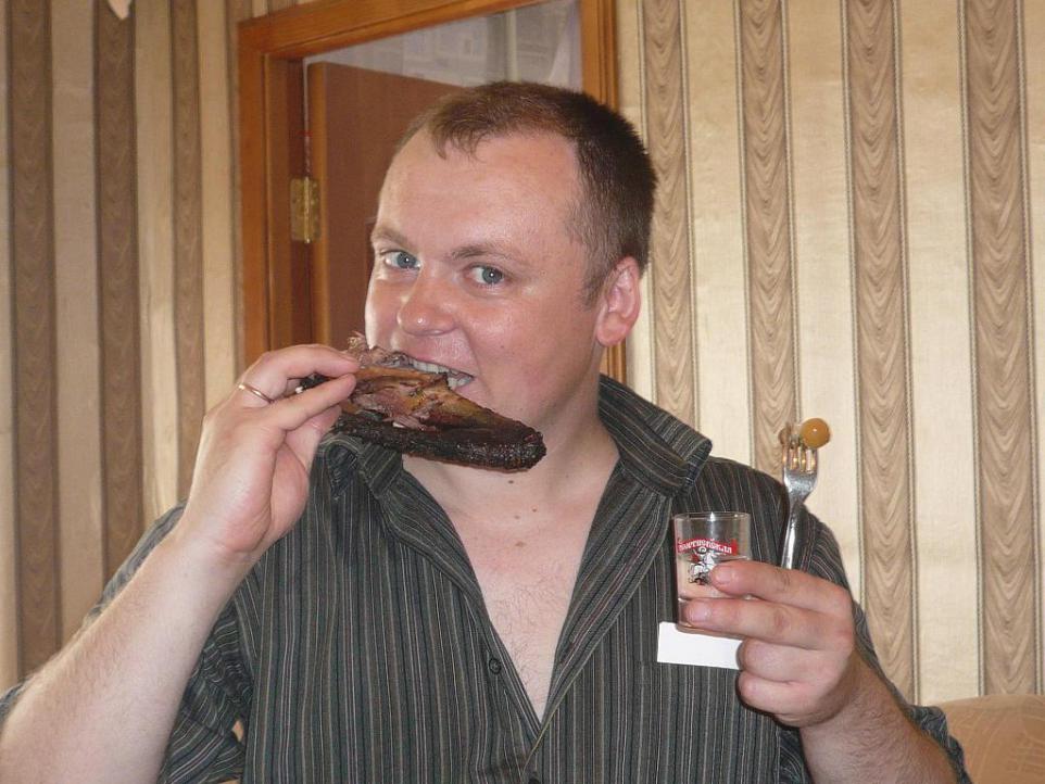 Крыжень сыровяленный. Рецепт. Берем соль, сахар (соотношение 5 к 1), специи по вкусу. Обильно засыпаем смесью утку, ставим в прохладное/холодное место на 5-7 дней, периодически переворачиваем. Затем вымачиваем в воде 1 день. Резрезаем по груди, вывешиваем в прохладное проветриваемое место. У меня сохло примерно месяц. Вот такая сила воли ))) Последний раз редактировалось DK; 24.11.2010 в 21:45. |