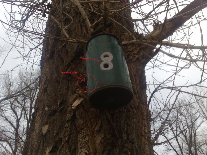 Ни один шарик не попал в бидон из 2-х выстрелов, потом пальнул 2 раза в пень метров с 30-35, так