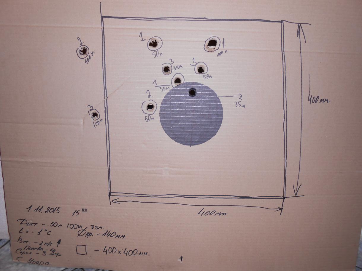 А теперь результат выстрелов сегодня. 3 по 3. дист. 35м, 50м и 100м.