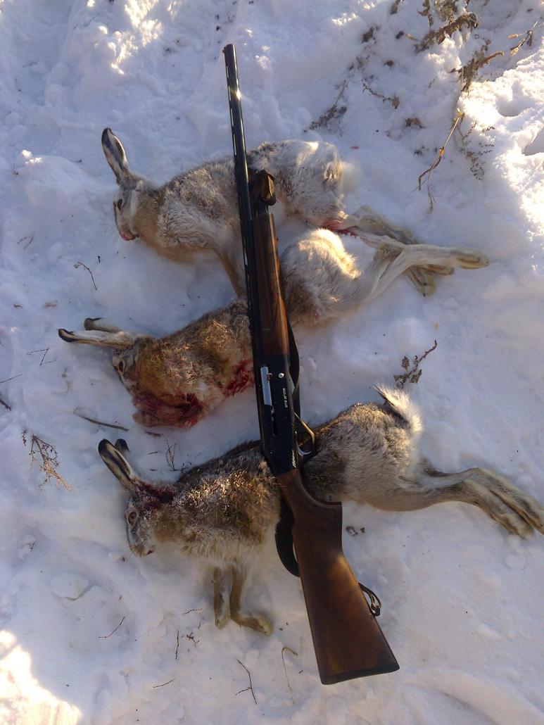 Сегодня с отцом и товарищем перед моим отъездом прогулялись крайний раз по зайке. Зайка пока лежит плотненько, подпускает на 20-25 метров. Из под собачки в 5 метрах поднимается. Нашли райское зайкино место (поле неубранной капусты, я думал такое только в сказках бывает). Ну в принципе вокруг него и топтались. Всем удачи на выходные!!!
