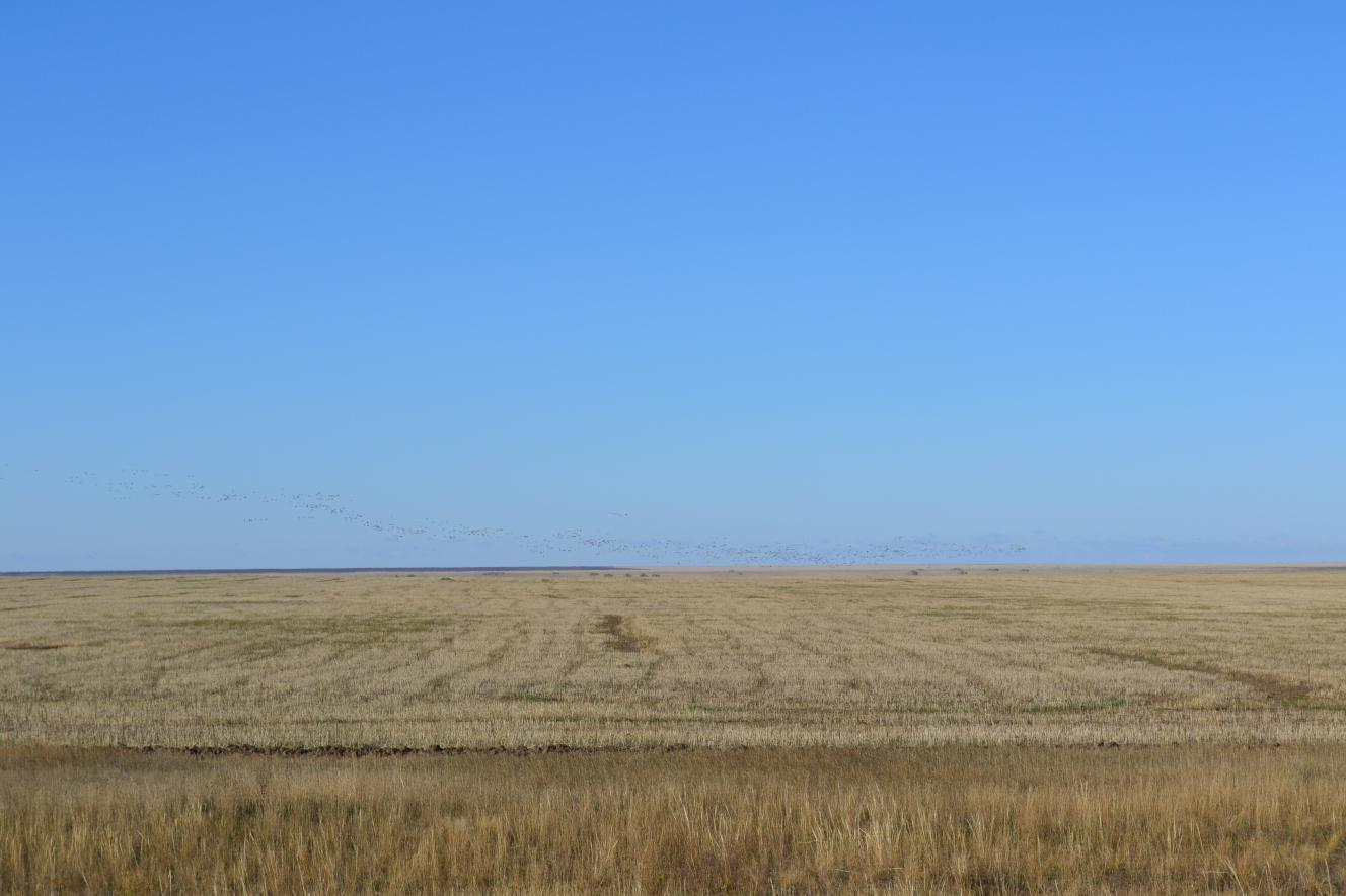 15.10 рано по утру команда в составе 6 человек (из участников форума ещё Махх163) выдвинулась в Оренбургскую губернию, Светлинский район в, уже становящуюся традиционной, поездку за осенним гусем. Команда не первый раз охотящаяся вместе, хотя и географически разбросанная: Сызрань, Тольятти, Ульяновская обл. Светлинский район...если глянуть на карту, то станет ясно, что это, если и не жопа цивилизации, то это самое место Оренбургской губернии - точно. Но, нам, маньякам, разве 1200 верст в один конец - крюк? В общем два мобиля, один с прицепом и в путь. После Кинеля, перед прудами, как раз на рассвете видим несколько стай гуся - добрый знак. Бузулук, Оренбург, Орск, Домбаровка, Ясный - нас встречают. Уже темно. Ужинаем, присоединяется третья машина и уходим в степь в Светлинский. Ночуем на берегу озерца рядом с Казанчой. В полутора килиметрах озеро Жетыколь, одно из самых крупных мест остановки пролетного гуся. Там его собирается в некоторые моменты больше 150 тыс. Вылет на кормежку идет волнами на протяжении больше полутора часов. Звук взлетающего гуся, если находишься на берегу, напоминает звук приближающегося поезда метро. Реально. С непривычки можно окуеть . Гусь и казара идет волнами и эшелонами, всех мастей и расцветок, но преобладает серый гусь. И разлетается все это охотничье счастье километров на 50, а то и больше в разные стороны. Причем ввиду полного отсутствия пограничников на вертолетах, может легко уйти и в Казахстан )). Охотхозяйства вокруг большей частью принадлежат печально знаменитому своими ценами на охоту Оренбургскому охотклубу. Но, отдать ему должное, не проводится охота на воде, что позволяет сохранить это уникальное гусиное место. Охота на полях и на отлете не ближе 150 метров до озера. Но нам не страшны их цены - мы дикарями. Переночевав и подмерзнув ( -4 ночью) принимаем решение эту поездку провести в комфорте. Передислоцируемся в Коскуль, где снимаем дом за 500 руб/сутки. Вода, газ, отопление, спальные места на всех - что еще надо? Тут же выдвигаемся в поля Отъезжаем километров 10 и сразу же находим два поля с гусем. Голов 500 - 700. Но одно поле за асфальтом, на территории не "нашего" хозяйства. Разбиваемся на вечерку. Трое садятся группой, трое поодиночке. Итог вечёрки: казарка и пара белолобиков. Начало неплохое. Вечером первое " с полем", ужин и спать. Подъем в 4 и в поле. Утро и еще 4 серых гуся в копилку команды. В общем режим в поездке простой: 4-00 подъем, завтрак, выезд (около 10 км), охота, разъезды по полям, определение места вечерней охоты, окапывание, возвращение в деревню, обед, сон, выезд на вечерку, возвращение, ужин, карты по настроению, отбой. Были дни удачной охоты, были пустые. Были интересные выстрелы и поиск подранков за 500 - 800 метров с загоном цепью ))). Была посаженная в 10 метрах от скрада, на 10 чучел и манок, краснозобая казарка. Был битый метров с 30 белолобик, упавший, точнее спикировавший в поле под 45 градусов и ударившийся о земь как кирпич, который подобран тряпкой, пролежав полчаса рядом со срадом, потом погружен в машину, перевезен, выложен на землю и..... убежавший через пять минут )))). Но в ночи был найден в 20 метрах, заныкавшимся в скирду с соломой - от нас не уйдешь))) . Был перевиден стрепет. Были обидные промахи и красивые выстрелы, веселые посиделки и временные размолвки. Народу в этом году очень много: на каждое перспективное поле 2-3 кома