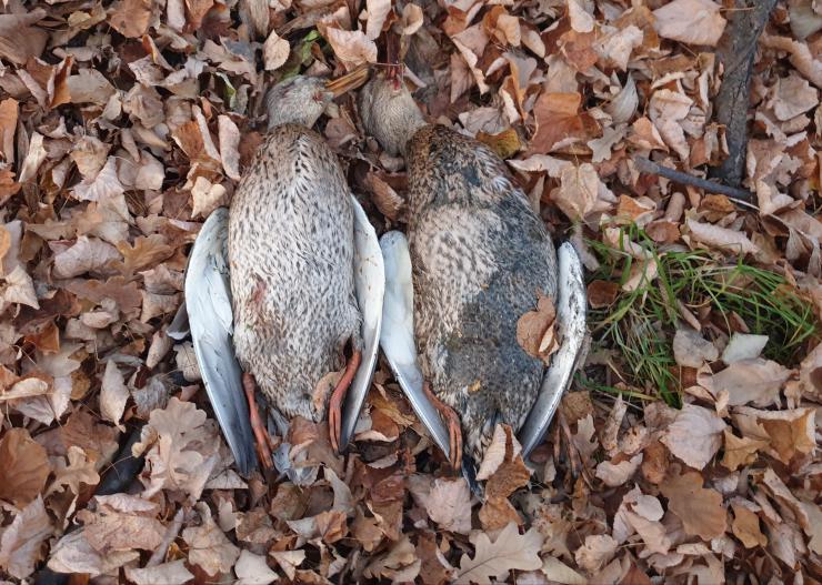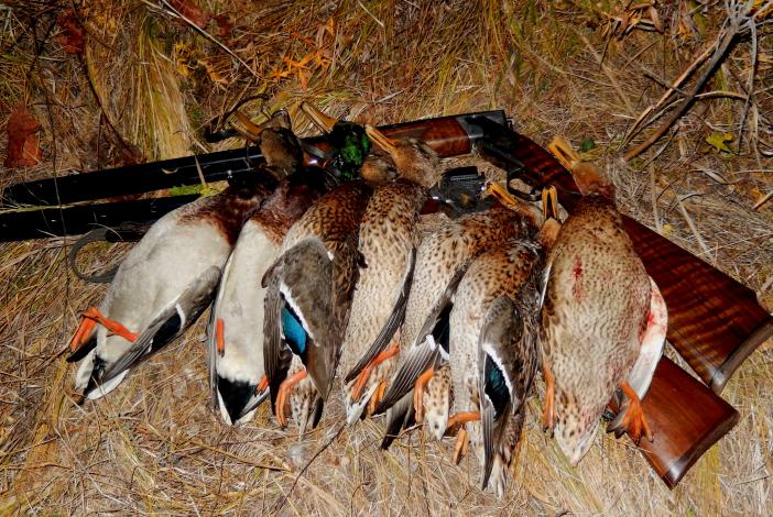 С каждой неделей по утрам всё холоднее, в субботу утка летала слабо, но удалось добыть пару, одну сбил с высоты метров 45- сделала приличную воронку на берегу