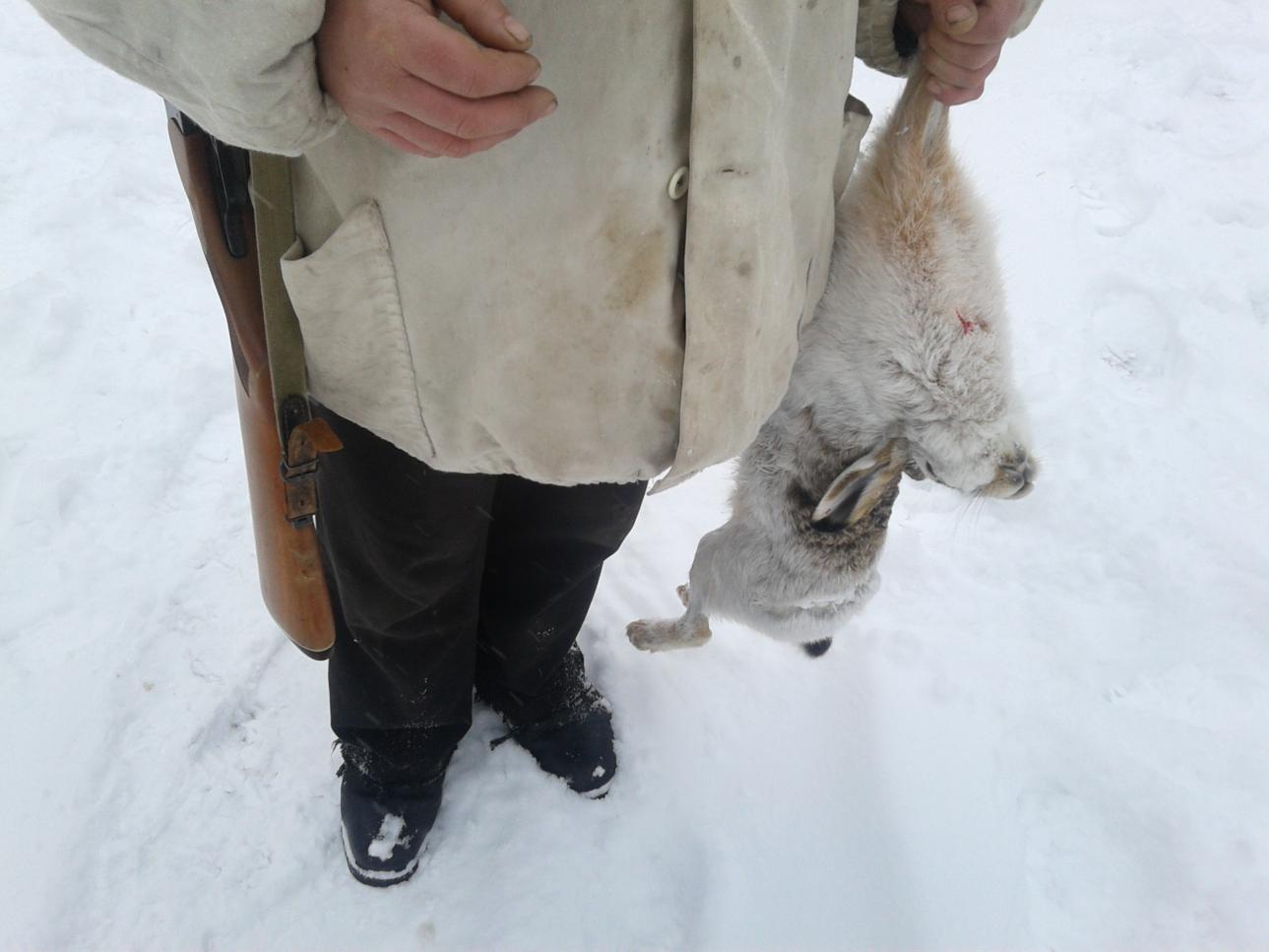 Очень редко не добираю подранка.Если ему не дать отлежаться,то он и два дня бегать будет.Всё зависит от ранения.По поведению зверька,по следу и по крови можно определить характер ранения.А с этими я разговаривал,что поднял трёх в этом районе,одного подранил.Сказал берите любого из двух и гоняйте.Показал куда мой подранок ушел.Попросил его не трогать.Пошел к машине чаю попить.А они сделали с точностью наоборот.Потом со словами "Все зайки одинаковые",уехали.Да и бог с ними.Я потом ещё наподнимал кучу,правда не очень везло,то далеко,то не видел.Зато интересно.