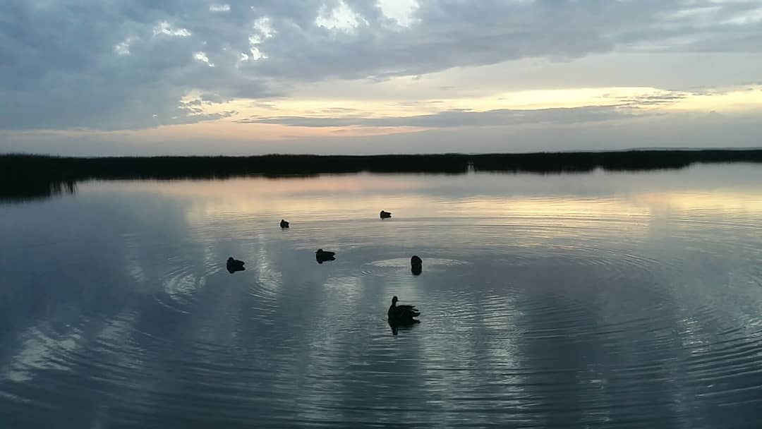 Но в этот раз решил не выставлять отсадку. Осень уже вовсю, говорят, идет гусь. Гусь же идет осенью у нас преимущественно по ночам, большими плесами и важно создать жизнь на выставке, заинтересовать чуткую осторожную птицу движением живых обманщиц, дать волну на чучела. Ждем... Ждем... Ждем...
