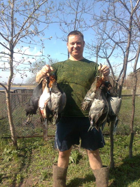 Вчерашние трофеи, 20.04 5 селезней за вечер, мулян отличный получился, с утра 7 шт, вечером 3 вальдшнепов, на фото только один остальные почти по темному, поэтому фото не получилось.