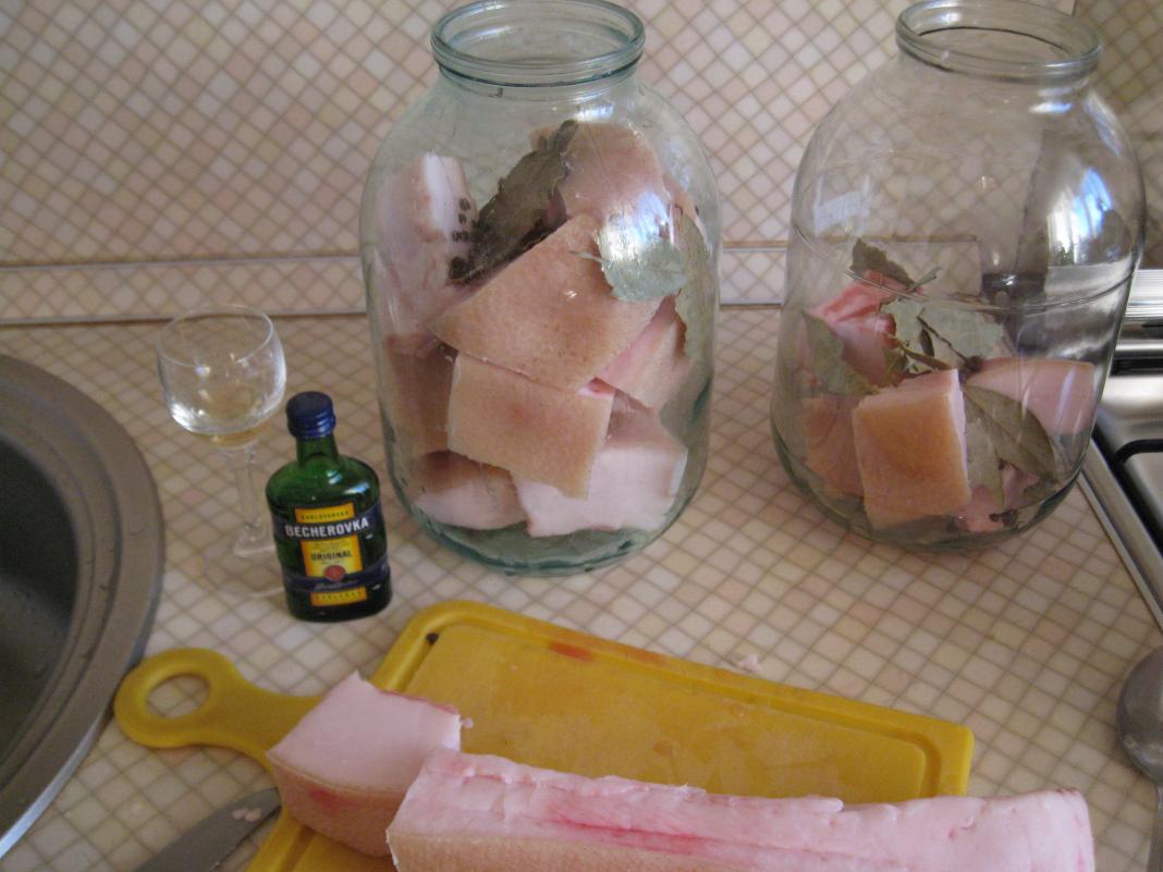 Тоже в выxи семейство мяском побаловал.Зайца тушил,кулеш из куропаток.Рецепты ранее выкладывал,повторяться не буду.Активно готовлюсь к весеннему открытию,а какая оxота без сала?!Сало солю уже третий десяток лет,больше всего нравится в рассоле.Берем свежее сало,режем на порционные куски и закладываем в 3-л банку.Туда же листья лаврушки,перец душистый горошком,чеснок порезанный.Готовим тузлук,4 столовые ложки соли на литр воды,доводим до 90 гр,даем немного остыть и заливаем сало.Убираем в xолод,через три дня уже можно пробовать.Xранить можно и в рассоле,сало больше чем надо соли не возьмет.Я делаю пополам,часть достаю,промываю,вытираю салфеткой,заворачиваю в фольгу и в морозильник.Быстро сxватил кусок,лучка,черного xлеба и в поля.