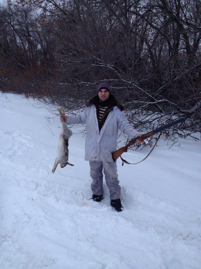 Вернулись с охоты. Заяц взят на 3,850 кг. Два сбежали, при чем шли по кустам, заяц пропускает нас вперед метров на 10-15 и бежать... Куропаток много, но близко не подпускают.