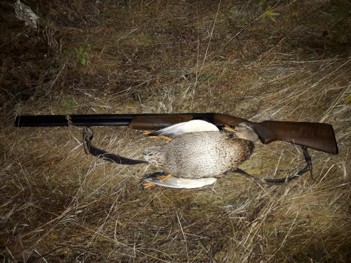 О патронах! Слухам вопреки снаряди 10 патронов с бинарным зарядом на двух порохах. Дробь №3. Остался безумно доволен результатом. Бой стабильный, и как видите, результативный. 7 выстрелом, из них 4 в цель, да так, что утка на поверхности трепыхалась, но не нырну. 2 контрольных - что бы точно не нырнула, и один (самый первый) - промах. Дистанция стрельбы от 20 до 40м.