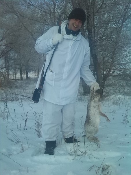 Ездили сегодня с товарищем закрывать год. Хоть свеженького и мало нападало,да плюс мело не хило вчера, а все ж таки следок свежий выискали. Вдоль посадки да в пашню. Пораспутывали, потропили, вытоптали - поднялся с лежки в пашне метрах в 40-ка (первый выстрел 54 средних шага), заяц оказался спортсменом, скорость набрал на форсаже космическую,первыми двумя "обзадил" его, третьим чуток зацепил. Дали облежаться, пошли по следу, пройдя километра 1,5 нашли теплую лежку (видимо услышал нас) и рванул в ближайшую посадку. В итоге Серега с ним в такие прятки наигрался!!! Тот видимо уже устал, да и подранен, пару раз обманул в посадке, прошел за спиной, но никак не хотел выходить из нее, а посадка широкая-метров 35, да густая. В итоге Серега таки обманул косого, первым выстрелом выгнал его из посадки (хотел прямо там приговорить,пока не свалил в дебри), а у же на поле окончил мучения нашего бегуна. Вот так и закончили сезон 2015. Всех с наступающим!!! А вот и наш спортсмен: