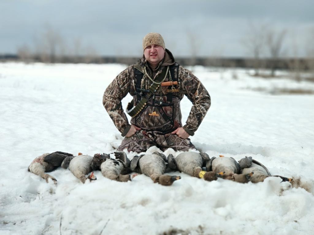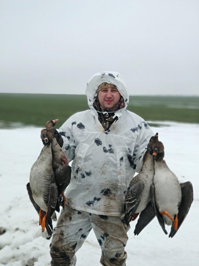 Выехали в четверг в 22-00, т.к. путевки не брали, на разведку не ездили. Итого сутки на поиски и пара дней охоты. В Пугачеве были уже в 03-00, оставили одного товарища на получение путевок и на двух машинах рванули в разные стороны на поиски Гуся! Лет начался в 09-00, везде, но мало. Гусь летел на Юг и Север. Половина полей в снегу, половина сухая. Параллельный коллектив обнаружил периодический пролет в соседнем районе, рвем к ним в поисках кормового поля… Позже приехал товарищ с путевками и начались мотания по полям… Побуксовали, покопали, поматерились – поля кормового нет))))))). В итоге разместились на поле с озимыми и снегом, там, где был замечен более системный, что ли пролет. В ночь расставились. Приняли решение идти без скрадков и маскироваться в снегу… В 05-00 уже были на месте в белых маскхалатах, гуся нет… 06-00 – гуся нет. 07-00 вдалеке слышится гогот, а может галюцинации. Сидим, дуем в манки – ноль… Прямо расстроились! В 08-00 почти на горизонте замечаем одиночку, маним, снижается, прет на чучела и прямо к нам в лоб, бьем – падает! Ииииес! «Распечатали» сезон 2019г!!! Поздравляем с полем товарища. И опять тишина. К 9-00 появился туман и он, думается, сделал всю охоту, ну и друг который разработал план сегодняшней охоты – гусь полетел и летел низко. Снег стал яростно таять и оказались мы жиже грязи и воды ))). Несколько налетов и с удручающей все немыслимые границы стрельбой мы вырвали свои 7 гусей на троих. Далее лагерь и несколько фото на память. Далее была вечерка и один добытый гусь в сумерках. На утрянке 07.04. добыли еще двух красавцев! Все, домой! Отличившихся с полем, остальным ни пуха, ни пера! |