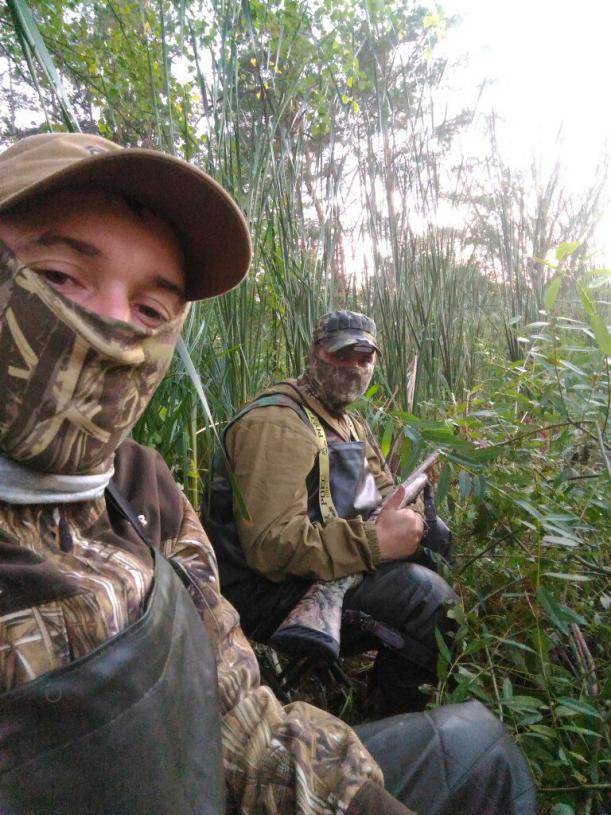 И так, суббота вечерка - полный ноль, ни одного выстрела с моей стороны. Рядом выстрелы были, но по чему и с каким результатом не видел, незнаю. Утро, воскресенье, поднимаемся с сыном раньше будильника, либо не шибко удобно спать в машине, либо в предвкушении утрянки. Чай на скорую с бутерами и вперед. По дороге на место охоты, думаю надо зарядиться, а то как обычно, пока идешь... И тут из-за деревца пятерка кряковых и пара промахов с моей стороны. Было еще несколько офигенных моментов, но почему то сегодня очень мазал. Потом шел одиночный чирок сбоку, выстрел... он от нас... еще выстрел... он развора чивается на нас и деру, и тут плавно начал снижаться на землю, я успел зарядить один патрон, подбегаем, а он уже отошел в мир иной.