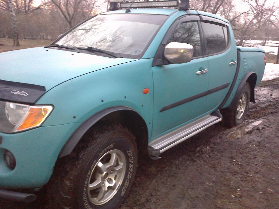 Подготовил машинку к сезону, обул муды, поставил наконец расширители, брызговики, сменил масла в АКПП, раздатке, мостах (везде залил ТНК- поддержим отечественного производителя)))). Брызговики по джипперской моде подвесил на цепочке, только делал не две, а одну на колесо, думаю меньше вероятности оторвать при таком креплении. К бездору готов.