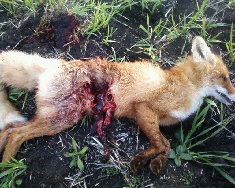 Вот вчера пока собаку искал Рем свой прихватил, идя по опушки в поле увидел лисицу... Приложился - уперся о сучек... паххх... сморю кувыркнулась и тишина... Поше посмотреть... ППЦ... На охоте обычно не убиваешь зверя а добываешь... Но это... явоно убил... Кусочки внутренностией валались в 1,5 метрах..